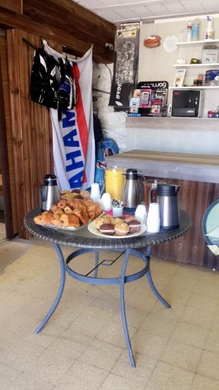 Une terrasse, des douches avec vestiaires sont à la disposition de la clientèle.